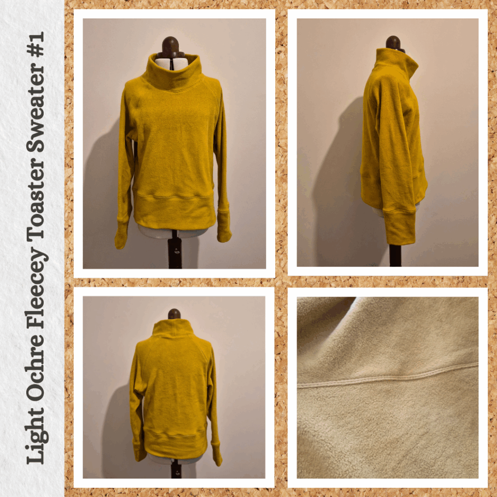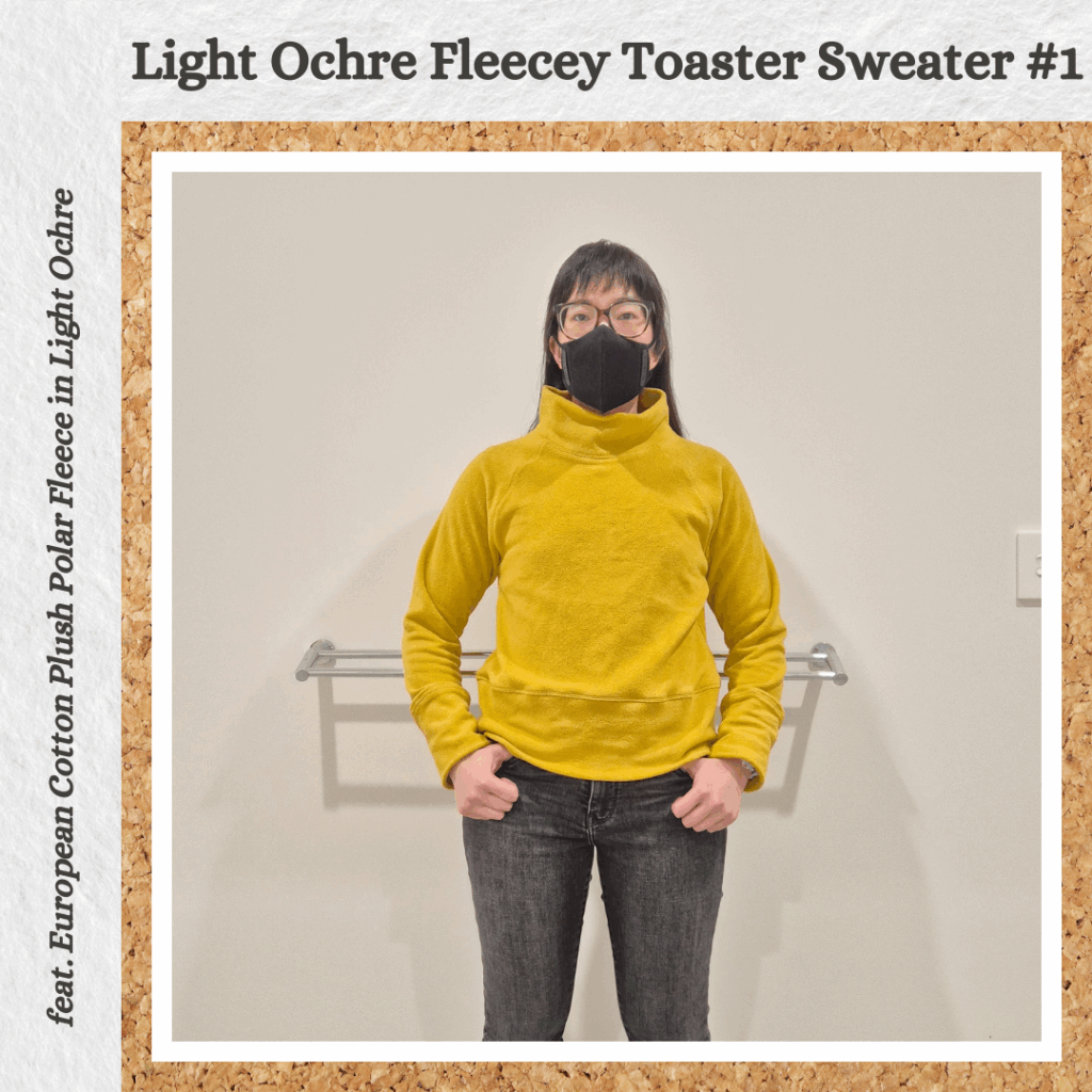 So after hacking together the Negative Longcuff Sweater using the Toaster Sweater as a base, I wanted to try and make it as intended with the full height collar and with the proper fabric (not ribbing). However cotton fleece isn’t that common a fabric, but luckily Wattle Hill Fabrics had it in light ochre, which fit in with my Yellow Sweater Project.