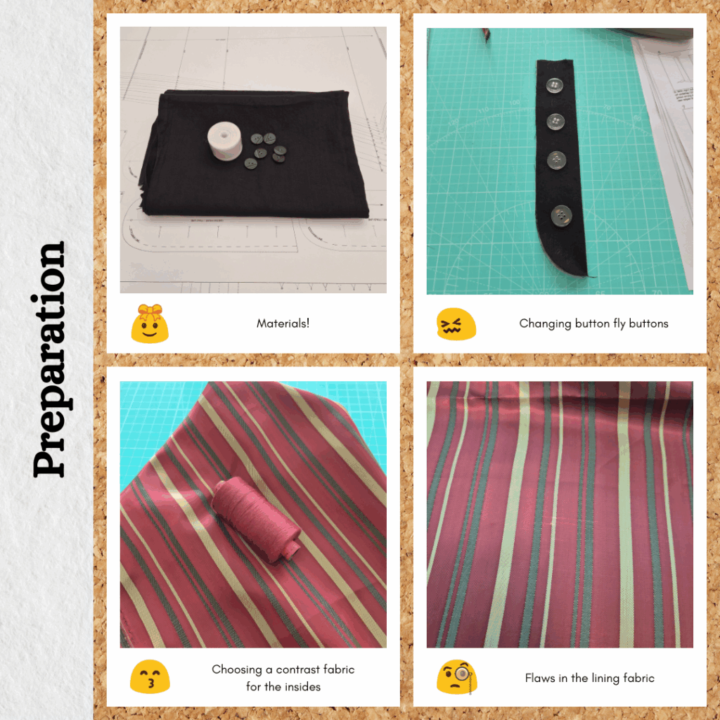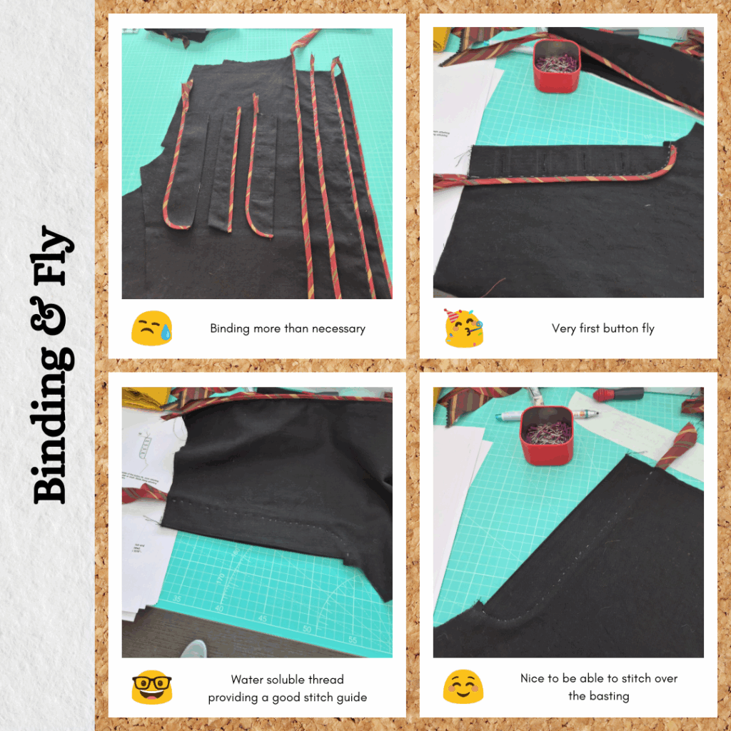 So when it came to actually putting things together, I realised that I actually shouldn’t finish any of the fly pieces until they are assembled. So made handwritten notes on my printed out instructions. Some parts I unpicked and redid and some I just left as is. I have to think about how I want to do the front crotch seam, maybe I should extend the seam and do a proper flat fell? But if I don’t mess up the bias binding, maybe it would be easier to sew this part (less bulk). Maybe double bias would be fine at this point… This is the hardest part of the whole process, so I wasn’t too harsh on myself as it will be case of practice makes perfect.
