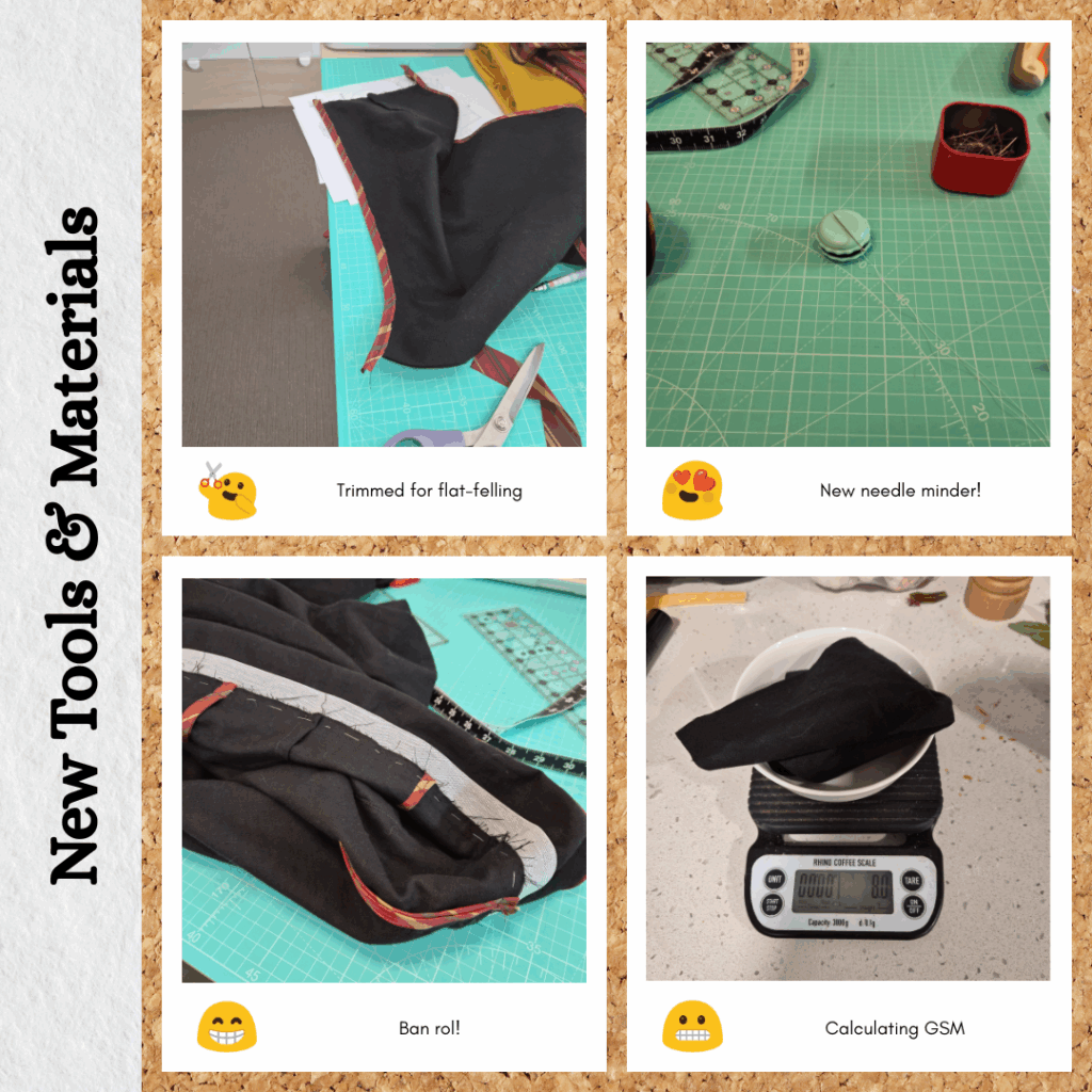 I decided to go all out with this and bias bind all the edges. Partially because my overlocker was set up for my yellow sweaters but also I figured I should go all out and figure out where I can tone it back for future projects. I chose to use lining fabric from Remnant Warehouse where they gave me like double what I ordered because it had ‘flaws throughout’. I checked both sides and could only find one flaw. It also wasn’t that far from one of the edges of the cut fabric piece, so cut my bias from here. I cut it 3cm wide and ironed it in half to create my bias binding. I had issues catching the underside with the first edge I bound so tried to use fabric glue for the second edge and the results were worse LOL. So I handstitched it down using watersoluble thread. But surely bias binding shouldn’t be this time consuming…I then remembered I had bias tape making tools and pulled that out. But 3cm doesn’t match up to any of the recommended widths. So I tried to cut out a 34mm wide piece but the fabric is slippery and it wasn’t 34mm throughout the whole strip…I also was looking up the Simplicity bias maker machine at the same time since I knew this was a thing but I had dismissed it prior because I only really used bias for quilt binding and I haven’t been making many quilts recently. But maybe something to consider now that I’ve become a fan of Hong Kong seams. Btw, I found an interesting article about why they are called Hong Kong seams. Anyway back to my bias making attempts, I was looking up reviews on the Simplicity machine and found a Reddit post where people were saying you need to pin the tool down to get good results. But I couldn’t find any tutorials on doing this. So I tried pinning down the end of the bias strip instead and this worked ok for a bit then terribly haha. So I think I’m just one of those people who just can’t comprehend how to make good bias tape. At this point I just gave up (I had a minor cold too so wasn’t in the best frame of mind to begin with) and just went back to my hand stitching method. But I’ve got some research to do for future projects – should I buy a bias maker, how to make continuous strips of bias and how to stabilise slippery fabrics with starch….
