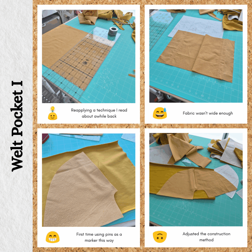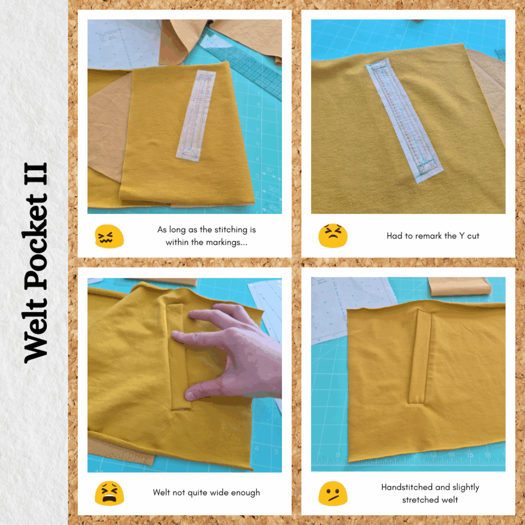 While I didn’t use the welt pocket templates, I did use pins to mark out important points to help with inserting the welt, like how it was done in the tutorial video I watched. It works better than expected haha. But I think I don’t like this method of inserting a welt pocket, so will do it the other way next time I make this pullover.