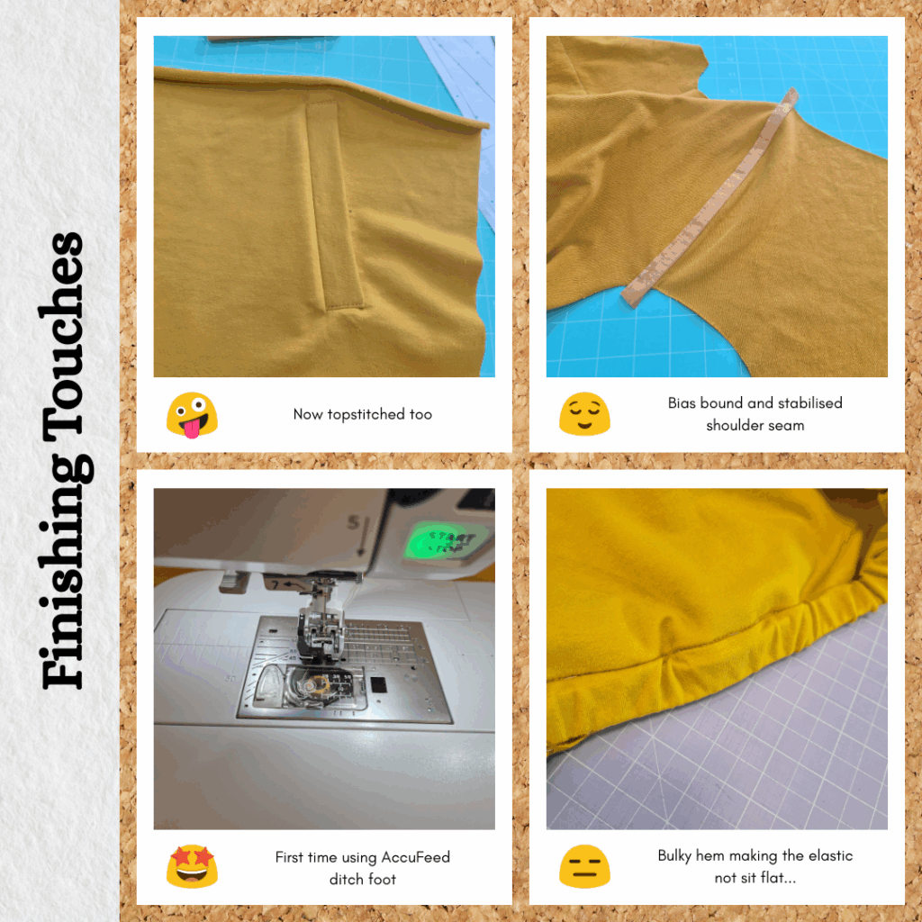 It also meant that when I attached the hem and cuff casings I had to fold under and in this case (in order to remain consistent) ditch stitch it down from the front. It was mostly fine except after inserting the elastic it didn’t really sit flat because the seam was quite bulky. But after I chucked it in the wash to remove the hand basting I did (with washable thread) it seemed to settle. So maybe all’s well that ends well?