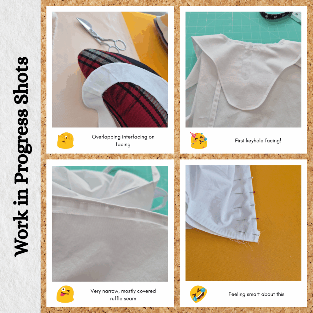 For the keyhole, I should make a template as well as a separate pattern piece for the ties since I will always want to use the same fabric for these. And next time I should mark the keyhole stitching line on the facing not the main body, I only managed to get away with the other way around because the fabric was white haha. I made sure to reduce stitch length to 1.5 for the corners and entirety of the keyhole and I think this helped me turn everything right side out nicely.