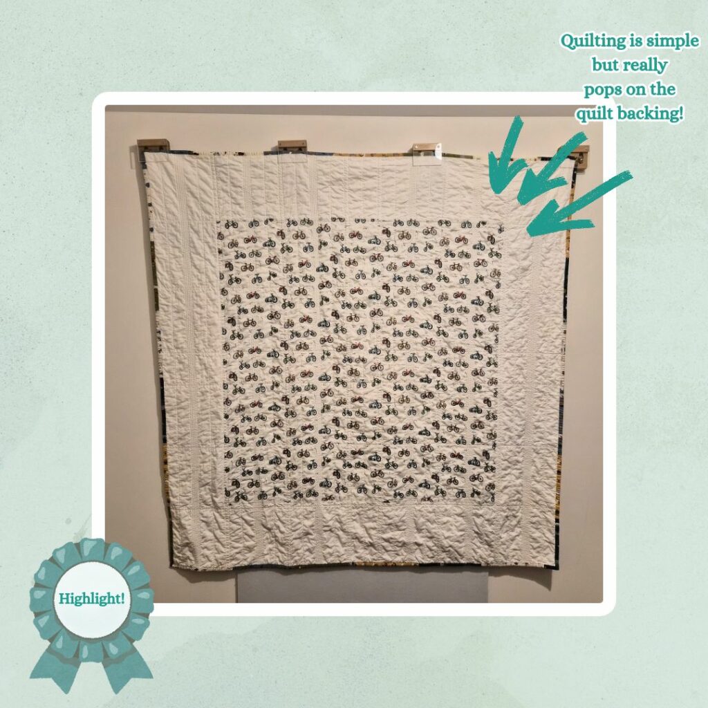 Backing Fabric: Bicycles on White Bikes Cycling on Two Wheels Sport Quilting Fabric (Find-A-Fabric) & Emma Louise – Vanilla